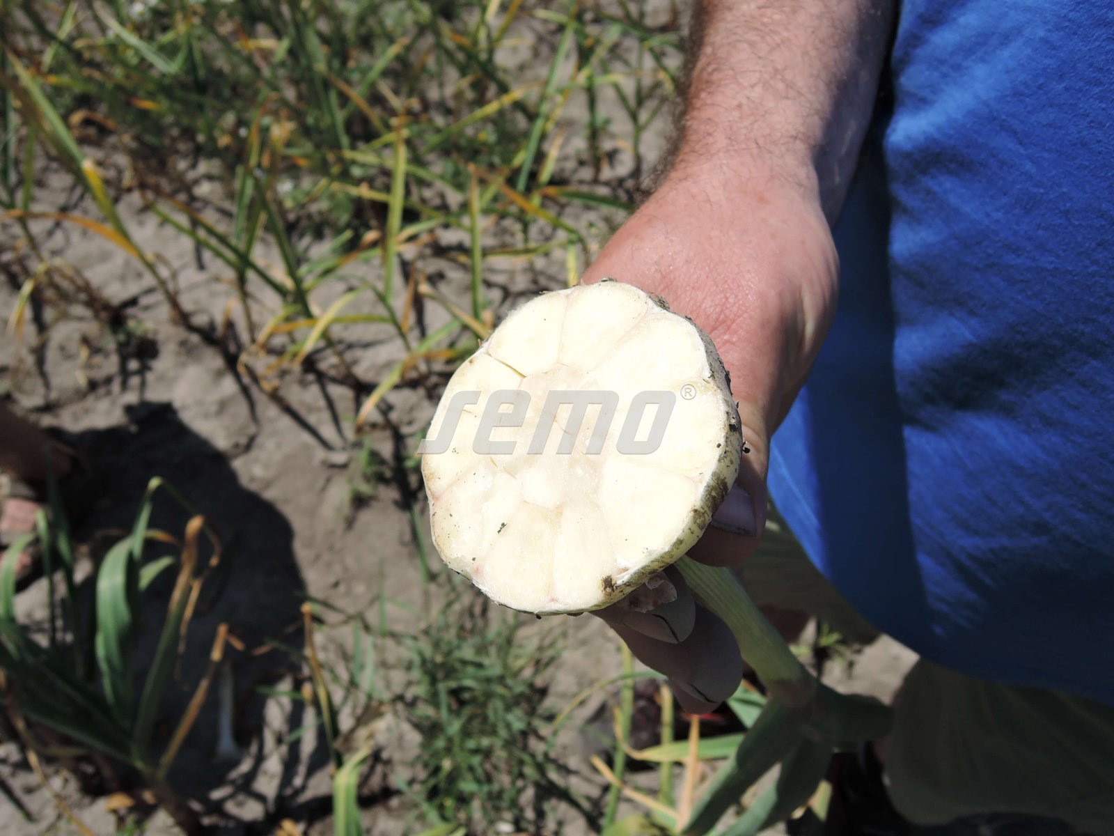 | KAREL IV. | hard neck, for autumn sowing | mid-late | wide erect with bent tops dark green | 70-90 | creamy head violet cloves | slightly flattened round | 5-7 | 7 | stable high yield |
