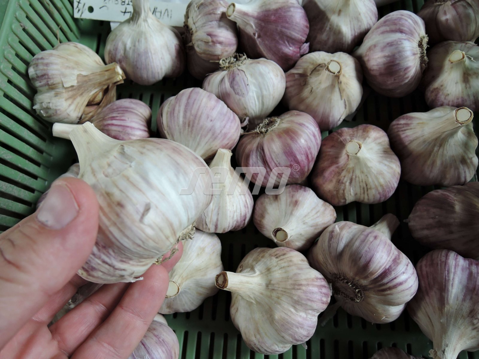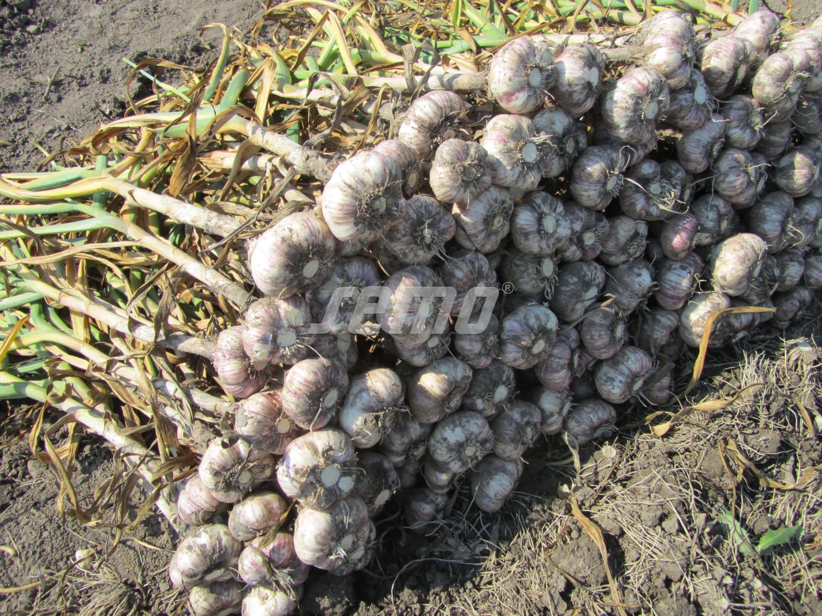 | IVAN | hard neck, for autumn sowing | mid-early | wide erect green | 80-120 | creamy head violet cloves | slightly flattened round | 6-7 | 6 | very healthy, large bulbs |
