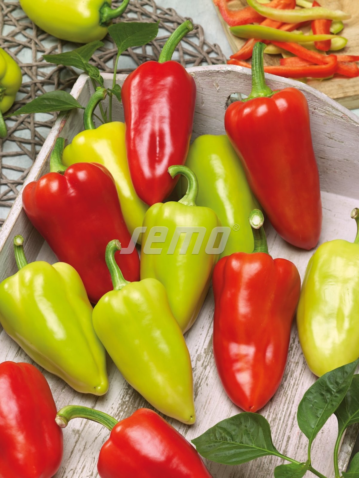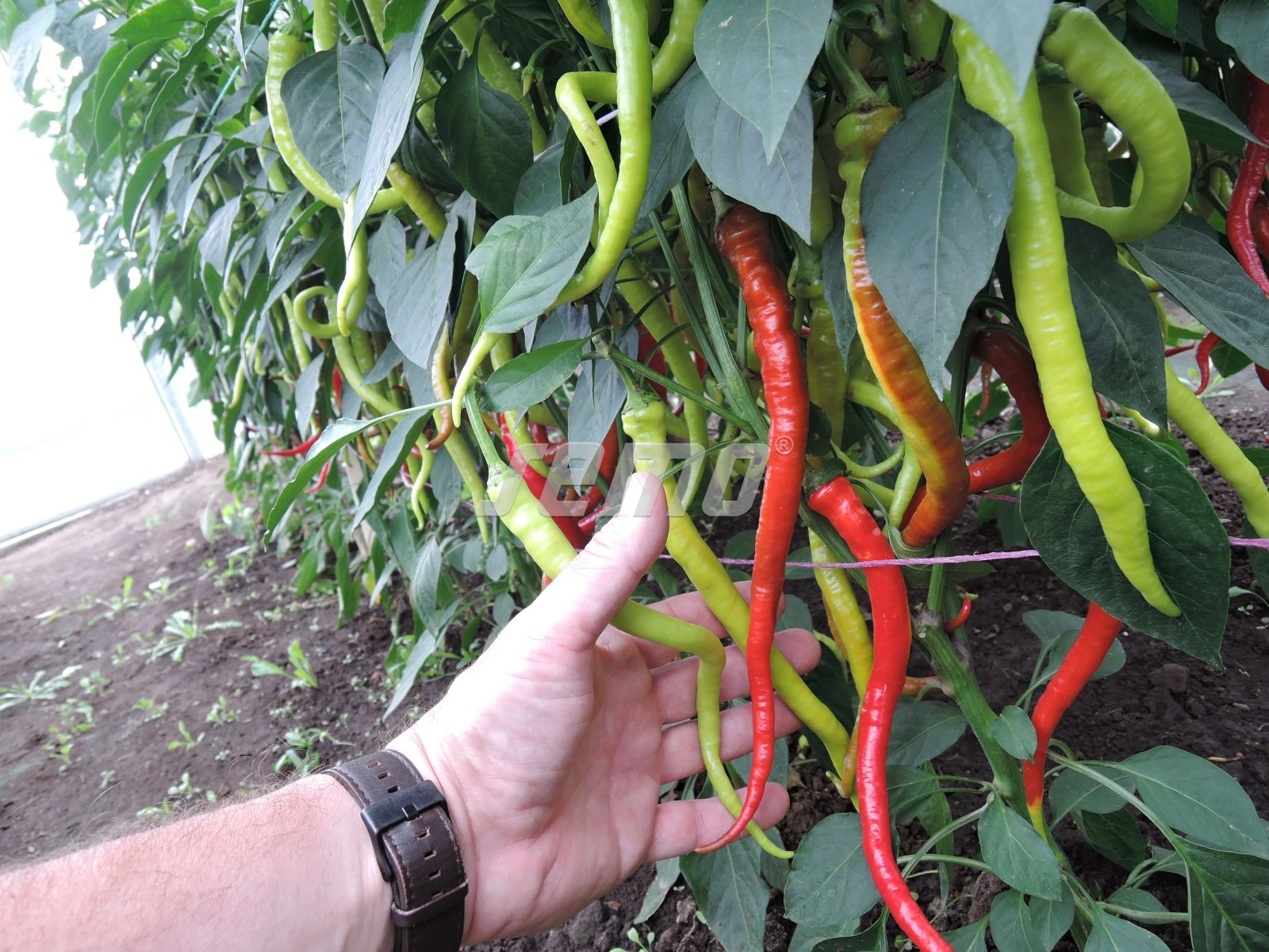 | SEMAROH | early | medium | light green | red | 2 | C1 | 3 - 4 | 16 x 3 | 80 | large "ram's horn" variety for both fresh market and canning | |||||
