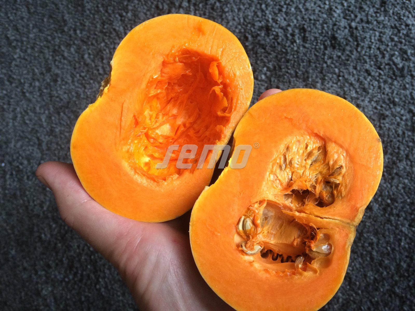Winter squash of the Hubbard type with very attractive small fruits weighing about 500 grams. The size and shape of the fruits, including the pronounced ridges, resemble Acorn squash. But the color of the skin and flesh of SHEEPEK is deep orange. The plant has a semi-vigorous growth and will surprise you with a very high fruit setting. Nice fruits have a very small seed part and the volume of usable flesh is surprisingly large for a relatively small fruit. PS: It is definitely not a squash only for singles as it might seem at first glance. Thanks to its very fine texture and sweet taste, it is excellent for preparing both sweet and savory meats and, of course, popular soups. SHEEPEK also stands out for its very long shelf life (more than 6 months), which only strengthens the use of fully ripe fruits for decorative purposes. The name SHEEPEK comes from Czech name for rosehip, which its shape and color remind us of.
